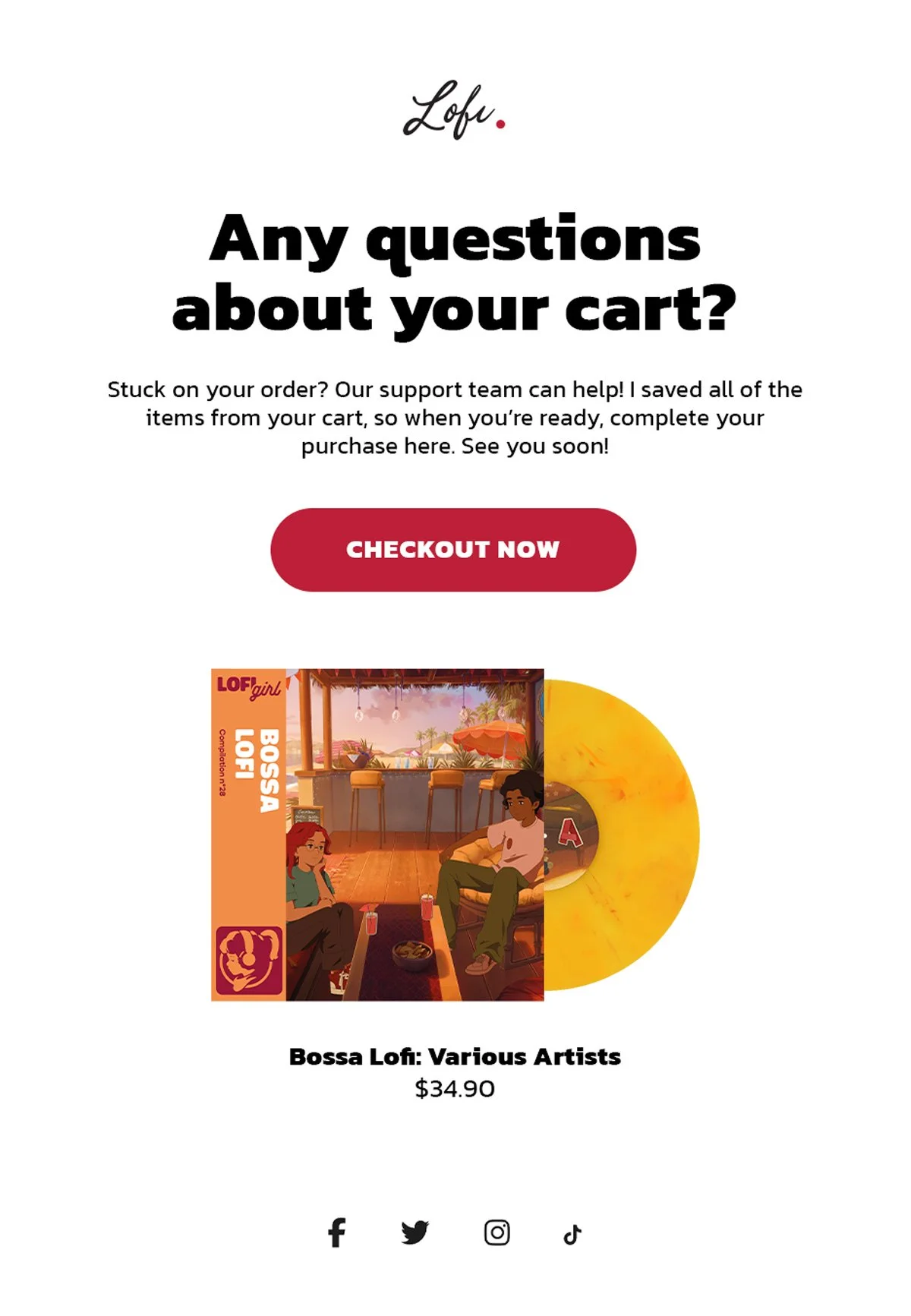 The first major win was developing a 4-email custom abandoned cart series using Klaviyo integrated with Lofi Girl's streaming platform. We A/B tested email layouts and optimized for peak periods like exam seasons and Black Friday/Cyber Monday. This strategy proved effective, generating over $44K+ since implementation.